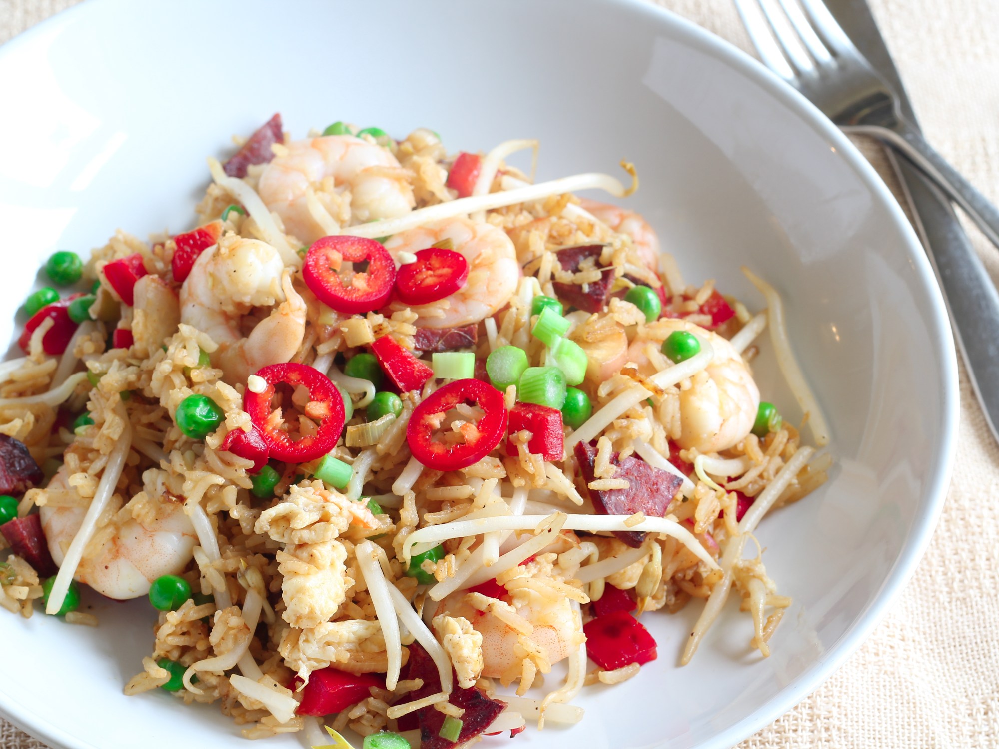 I adore chorizo too, it goes so beautifully with prawns. It’s definitely an excellent addition to your egg fried rice.