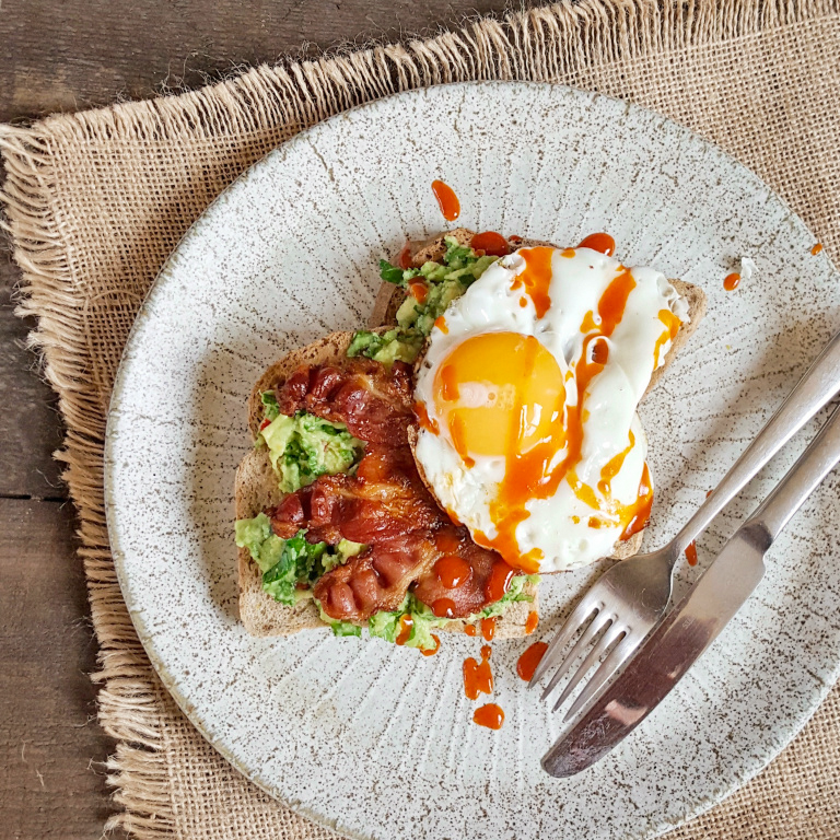 Avocado, Bacon and Fried Eggs on Gluten Free Toast