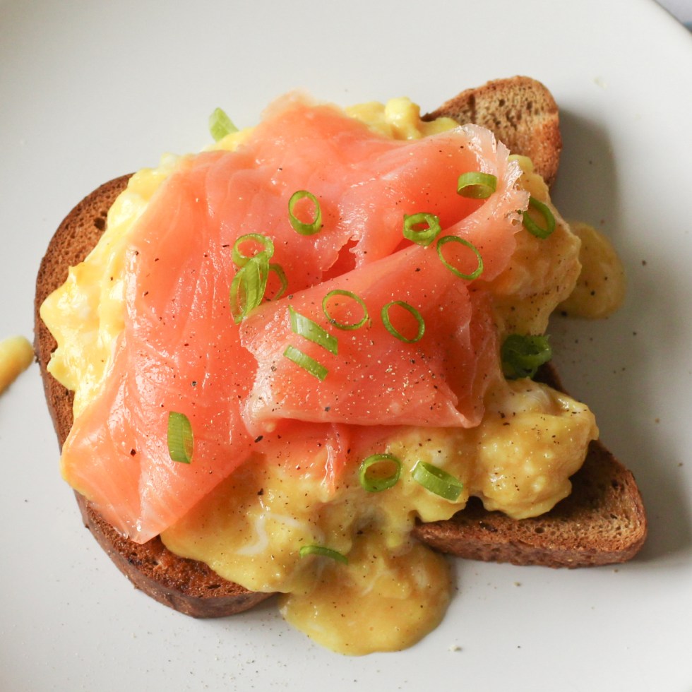 Smoked Salmon and Scrambled eggs on Gluten Free Toast